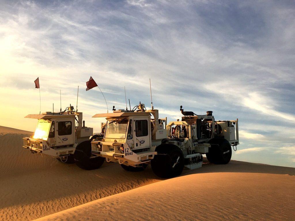 2017年1月14日,东方物探研发的可控震源车在鲁卜哈利沙漠中作业。 东方物探供图