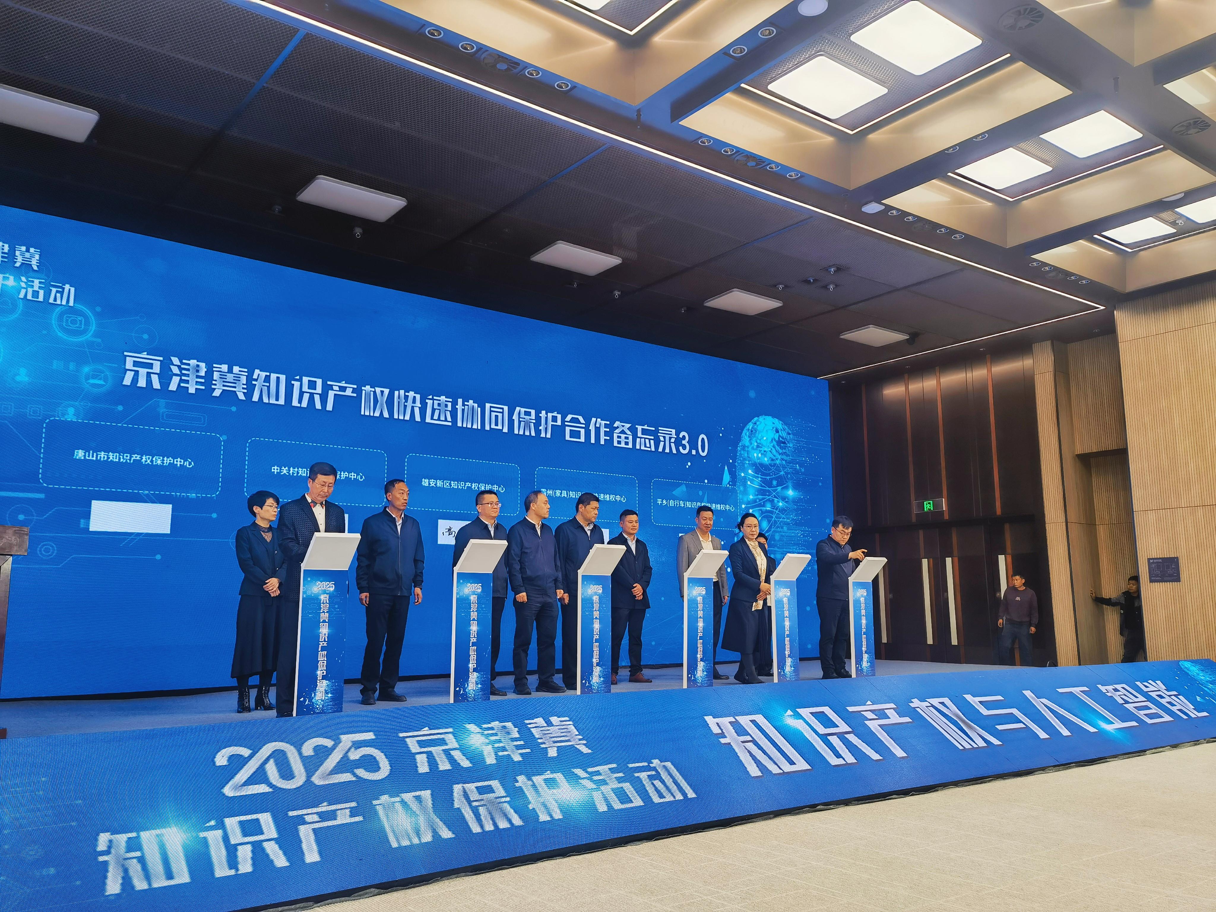 4月25日,2025京津冀知识产权保护活动在雄安新区成功举办。活动中,京津冀三地7家知识产权保护中心和4家快速维权中心共同签署《京津冀知识产权快速协同保护合作备忘录3.0》,标志着我国首个跨区域知识产权协同保护机制完成第三次迭代升级,正式构建起覆盖“严保护、大保护、快保护、同保护”四位一体的协同保护新格局。