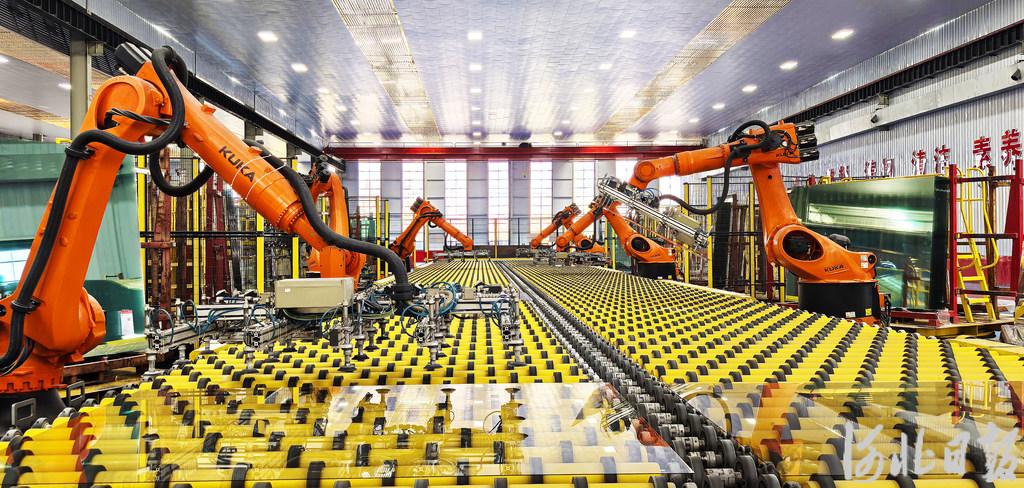 3月21日,位于沙河经济开发区的河北德金玻璃有限公司内,机械手在电子及汽车玻璃智能生产线作业。(河北日报资料片)