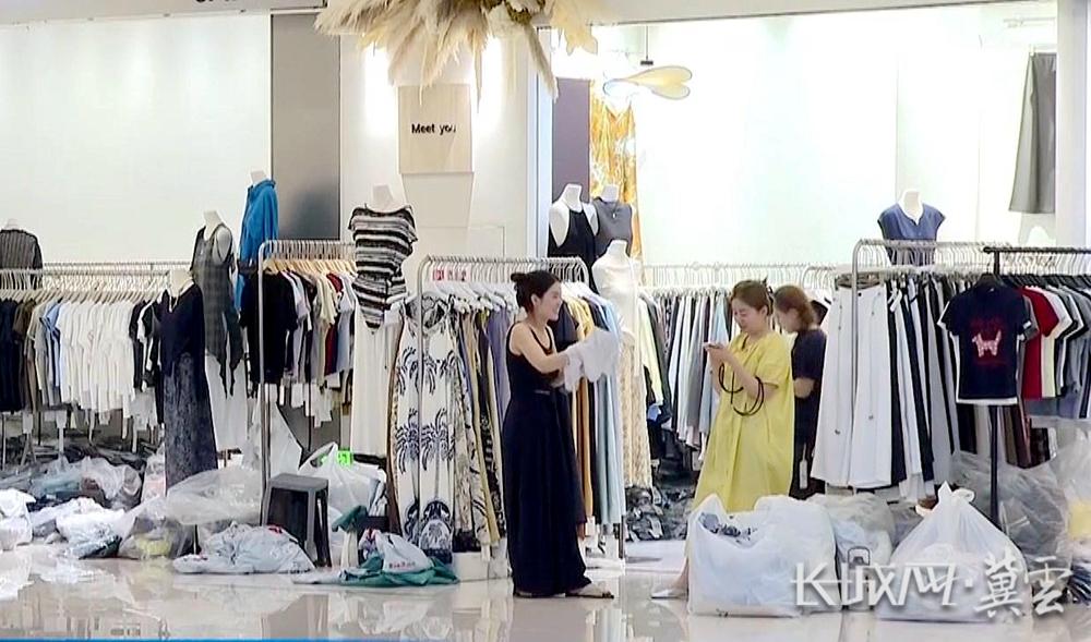 仲夏时节,京津冀(固安)国际商贸城里热闹非凡,来自全国各地的客商穿梭于服装档口之间,选购心仪的商品。