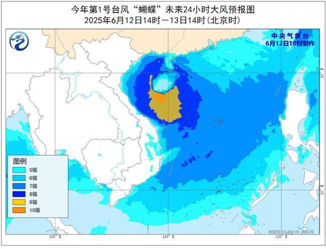 大风预报:6月12日14时至13日14时,南海大部、北部湾、琼州海峡、西沙群岛、南沙群岛、中沙群岛、广东沿海、海南岛沿海、广西沿海将有6-8级风,阵风9-10级,台风中心经过的附近海域风力可达9-10级,阵风11-12级。