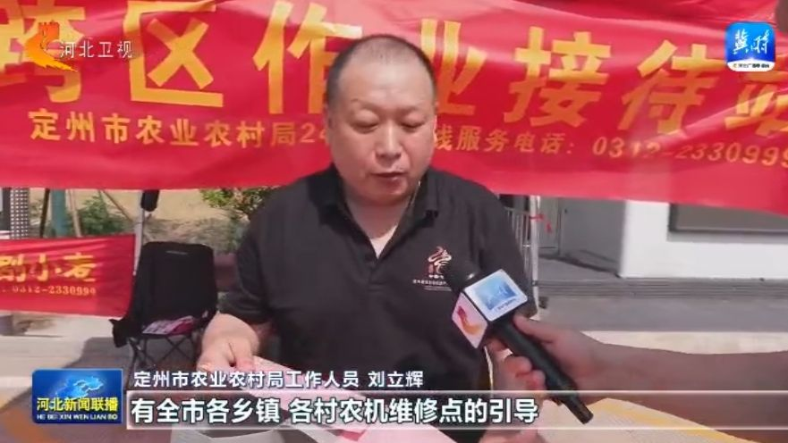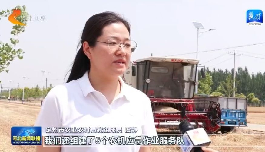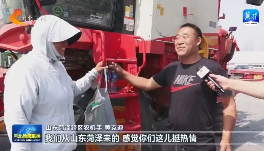 我现在是在定州高速出口,为了确保"三夏"工作高效有序进行,定州市的农业部门在五个高速口设立了农机跨区作业接待站。开辟绿色农机通道,安排人员24小时在岗在位,还为农机手们准备了2000余份的"三夏"暖心包。
