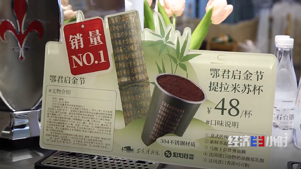 在安徽博物院的餐厅里,可食用的文创美食格外受欢迎,其中一款以“鄂君启金节”命名的提拉米苏蛋糕,勇夺“销冠”。