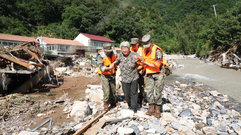 承德兴隆县民兵应急连100余名民兵携带装备器材徒步6公里,深入2个行政村,6个自然村配合开展道路维护、群众转移等工作。针对受灾较为严重的朱家沟村,河北省军区组织民兵力量全面开展防疫消杀工作。