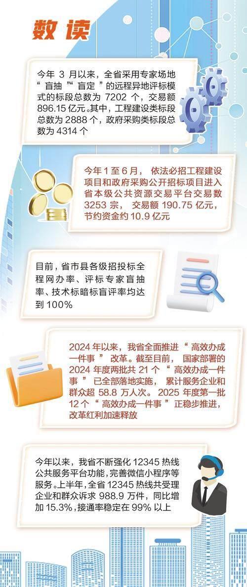 提升投标企业办事便利度,我省全力推进招标投标全程网办,实现招标、投标、开标、评标、定标、合同签订等事项在线办理和全程留痕、可追溯,让投标企业“一次不用跑”就能办完招标投标所有事项。
