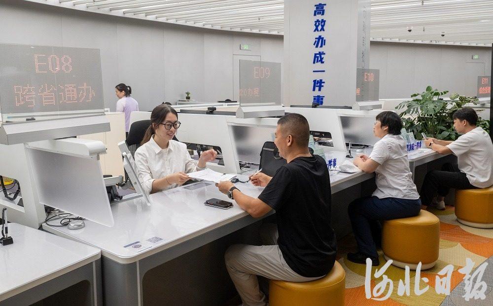 8月4日,石家庄市政务服务中心“高效办成一件事”窗口工作人员为群众办理业务。河北日报记者赵杰摄
