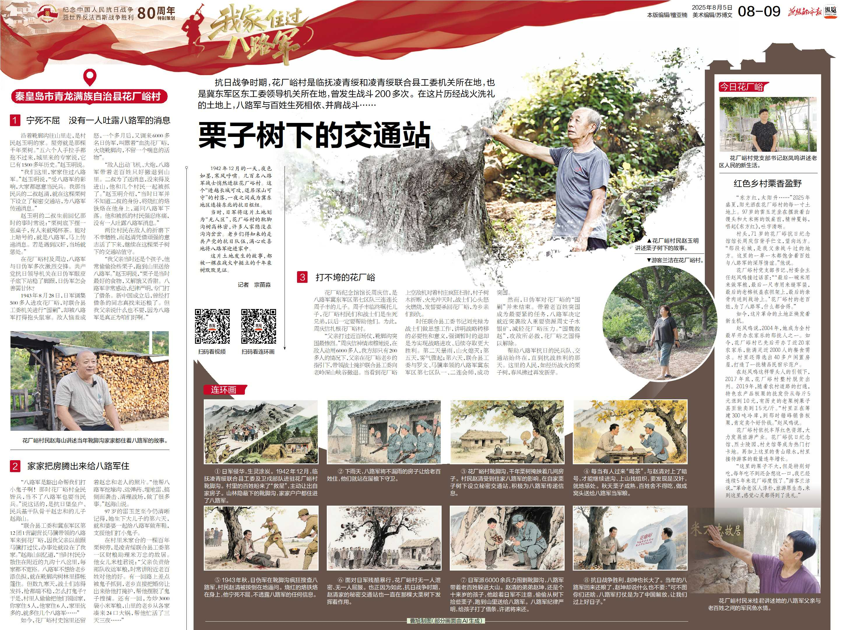 花厂峪村党支部书记、村委会主任赵凤鸣接过话茬:“‘最后一碗米用来做军粮,最后一尺布用来缝军装,最后的老棉袄盖在担架上,最后的亲骨肉送到战场上。’花厂峪村的老百姓,为了八路军,什么都舍得。”