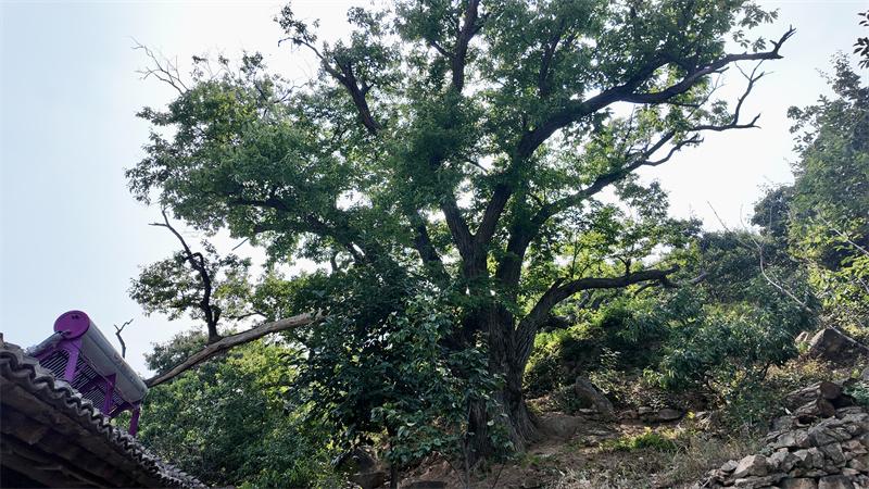 沿着靴脚沟往山里走,是村民赵玉明的家。屋旁就是那棵千年栗树。“五六个人手拉手都抱不过来,城里来的专家说,它已有1500多年历史。”赵玉明说。
