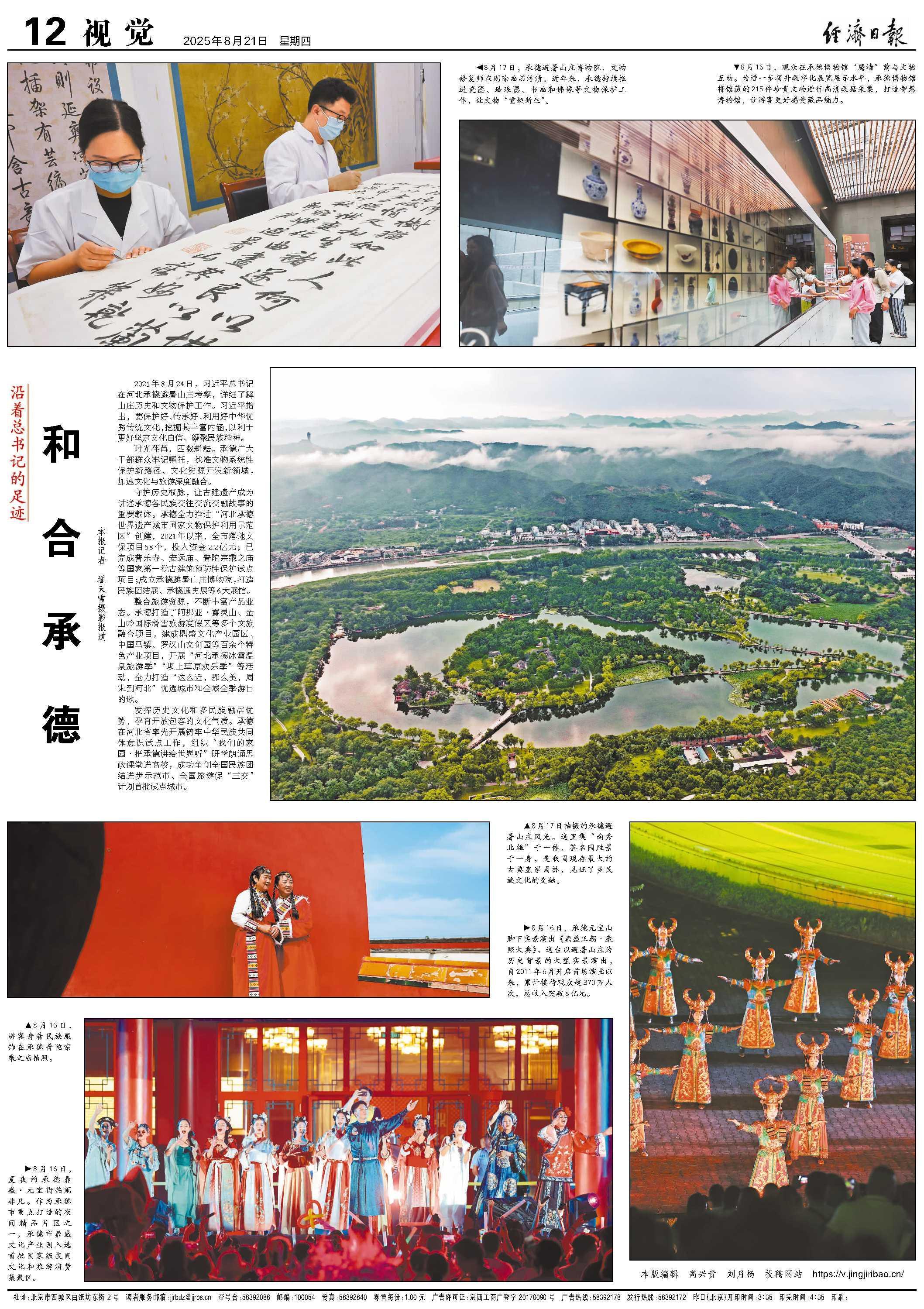 发挥历史文化和多民族融居优势,孕育开放包容的文化气质。承德在河北省率先开展铸牢中华民族共同体意识试点工作,组织“我们的家园·把承德讲给世界听”研学朗诵思政课堂进高校,成功争创全国民族团结进步示范市、全国旅游促“三交”计划首批试点城市。(经济日报记者 翟天雪 摄影报道)