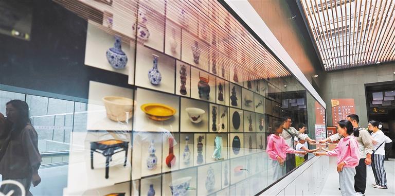 8月16日,观众在承德博物馆“魔墙”前与文物互动。为进一步提升数字化展览展示水平,承德博物馆将馆藏的215件珍贵文物进行高清数据采集,打造智慧博物馆,让游客更好感受藏品魅力。