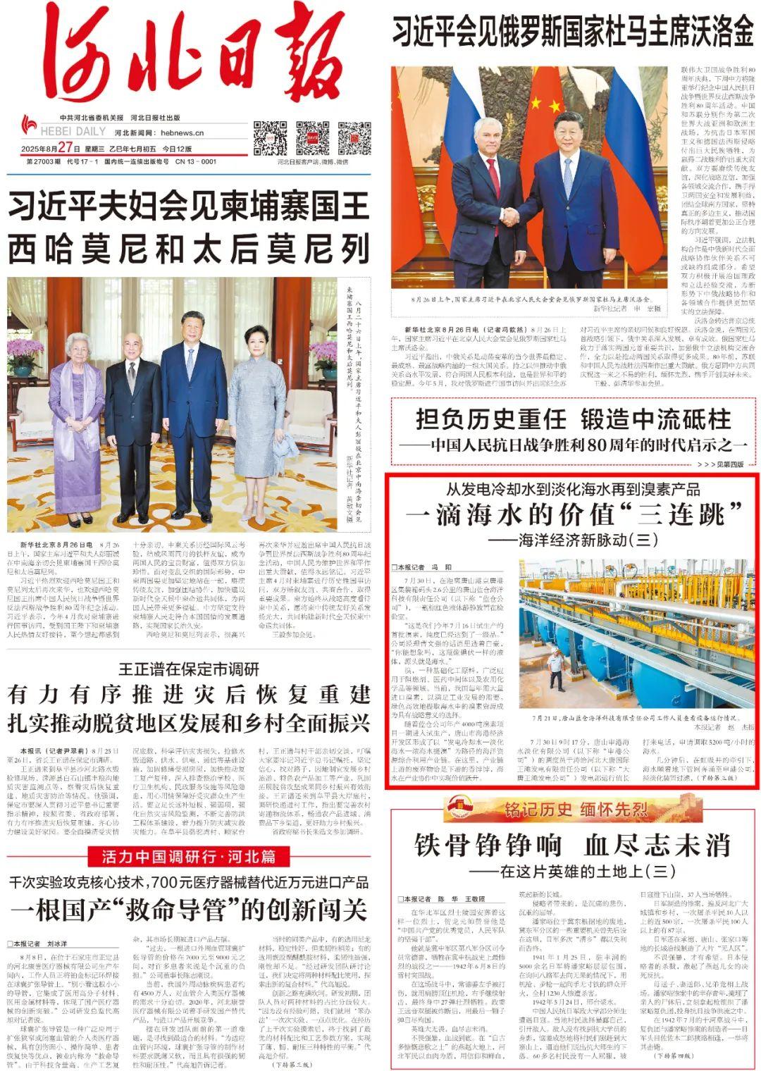 《河北日报》2025年8月27日1版