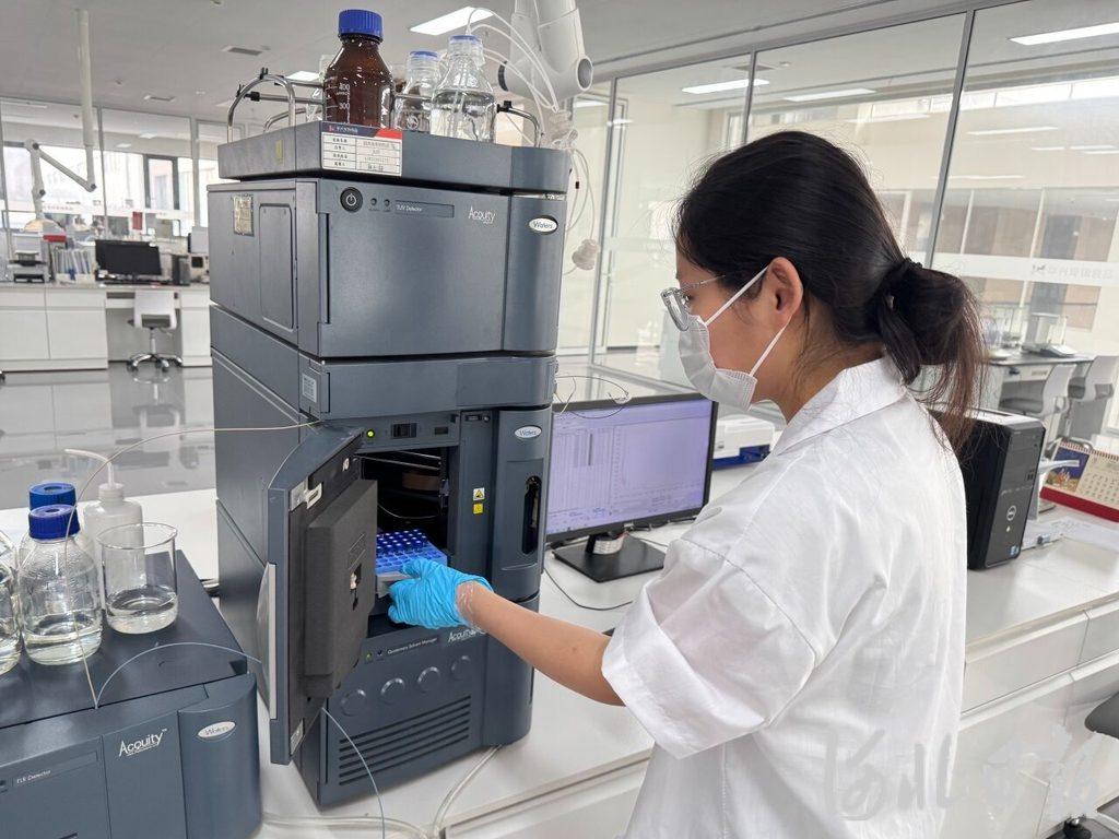 8月8日,在邢台市南和区华兴宠物食品有限公司研发品控中心,品控人员正利用一台超高效液相色谱仪进行产品质量检测。河北日报记者 常方圆摄