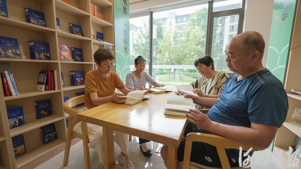 8月15日,雄安新区易安社区党群服务中心读书角,社区居民正在阅读。河北日报见习记者 李畅 摄