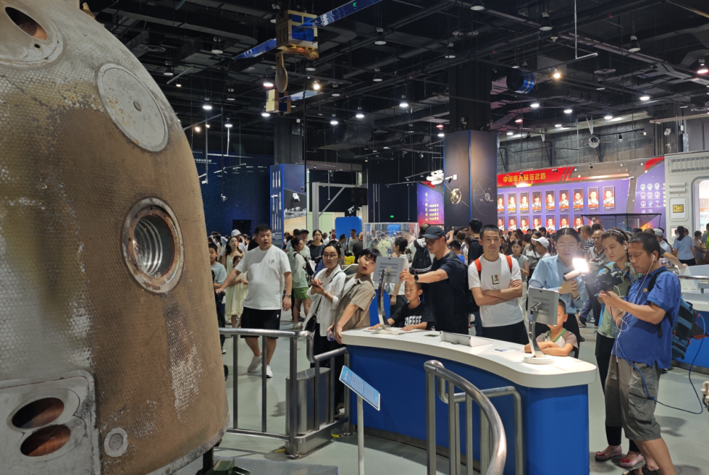 暑期的中国科技馆人头攒动,“神舟一号”返回舱实物吸引游客围观。(中国科技馆供图)