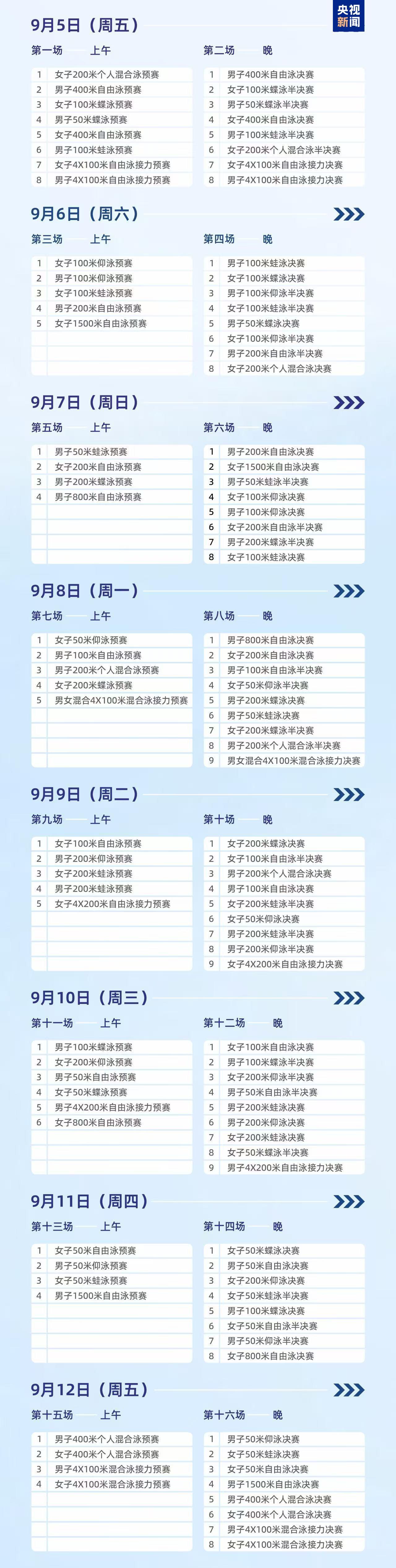 2025年全国游泳锦标赛将于9月5日至12日在成都举行。汪顺、潘展乐、徐嘉余、张雨霏、余依婷等名将都将参赛。