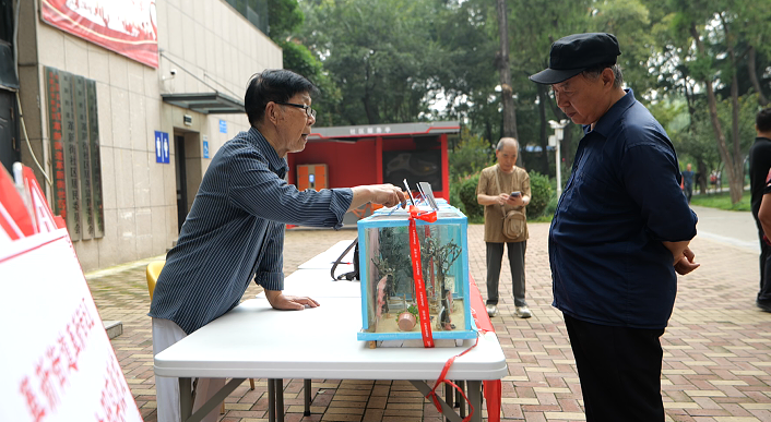 在石家庄新华区革新街社区新时代文明实践站,一位头发花白的老人正在利用自己亲手制作的抗战主题泥塑为社区居民讲解红色历史,老人胸前的党徽闪亮,手上的泥人栩栩如生,声音铿锵有力,吸引不少人在此驻足观看。