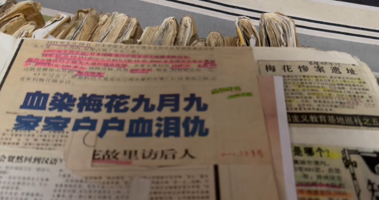 在张智的泥塑工作台旁,整齐地摆放着他四十多年积累的三十余册红色剪报,泛黄的纸页上,荧光笔勾画犹新,每个历史事件旁都有发生的过程、需要塑造的人物角色等详细注解……旁边还搭配着绘画、照片等等。今年是中国人民抗日战争暨世界反法西斯战争胜利80周年,今年年初,张智便根据这些剪报,埋首于黄土与刻刀之间,创作关于抗战题材的泥塑。