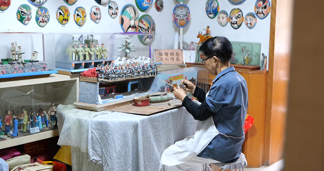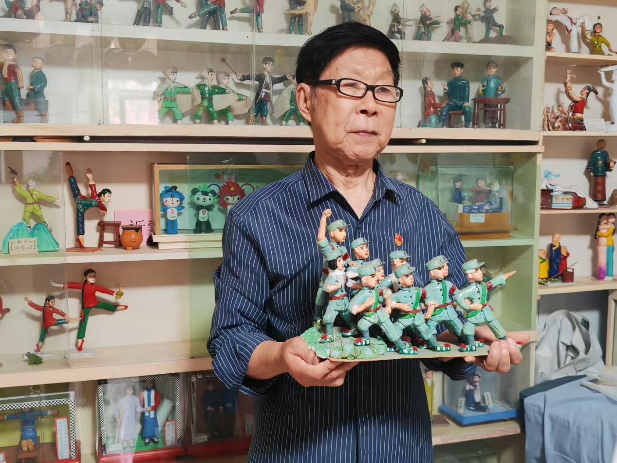 这位讲述红色历史故事的老人叫张智,今年88岁,从1997年退休后,张智就开始钻研喜爱的泥塑,在不断地尝试、改进中,泥塑的人物表情越来越细腻、造型越来越逼真,内容也越来越丰富。20多年来,张智共创作出数百尊泥塑作品,其中一多半都与红色题材相关。