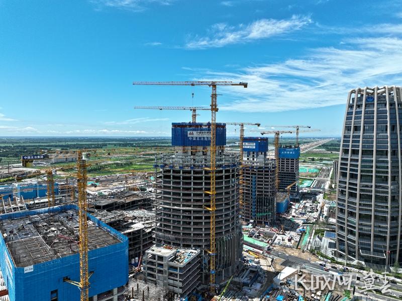 近日,在雄安新区国贸中心项目施工现场,“空中造楼机”正在紧张有序作业。资料图