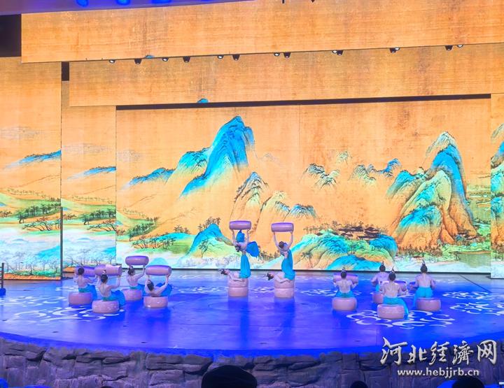 在吴桥杂技大世界“江湖大剧院”,杂技演员进行蹬鼓表演。