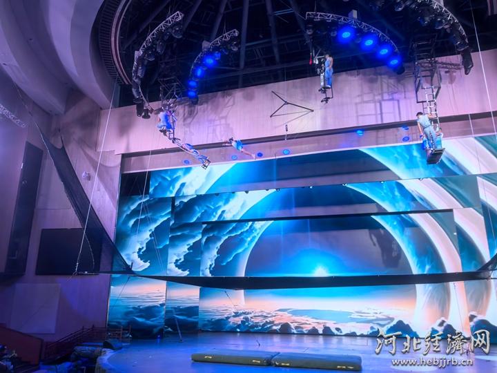 吴桥杂技大世界“江湖大剧院”上演空中接人表演,场面惊险刺激。