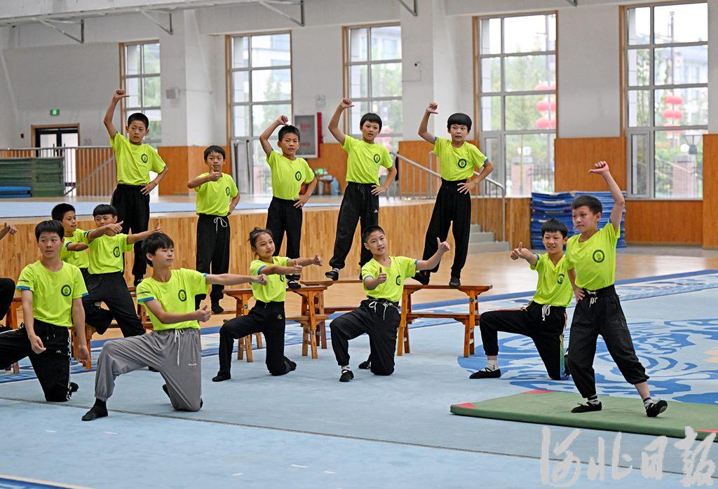 9月23日,在吴桥杂技艺术学校,参加第二十届中国吴桥国际杂技艺术节启动活动演出的小演员们正在排练。 河北日报记者 张昊摄