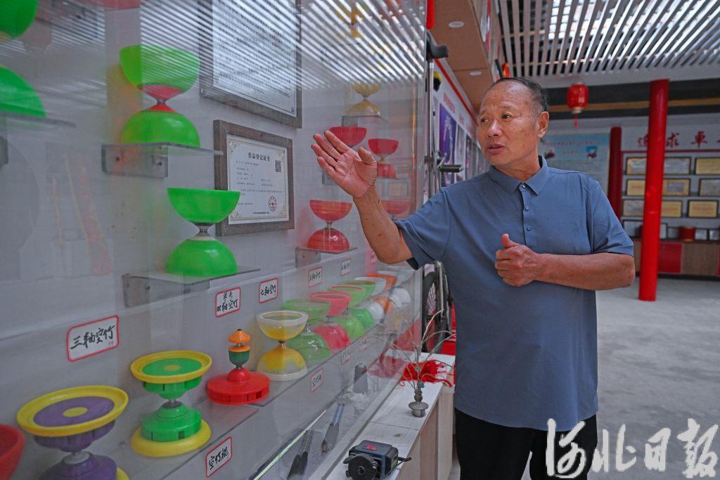 9月21日,吴桥丰耀杂技魔术道具有限公司总经理周文明展示用于杂技《生命之轮》节目的道具。河北日报记者 张昊 摄