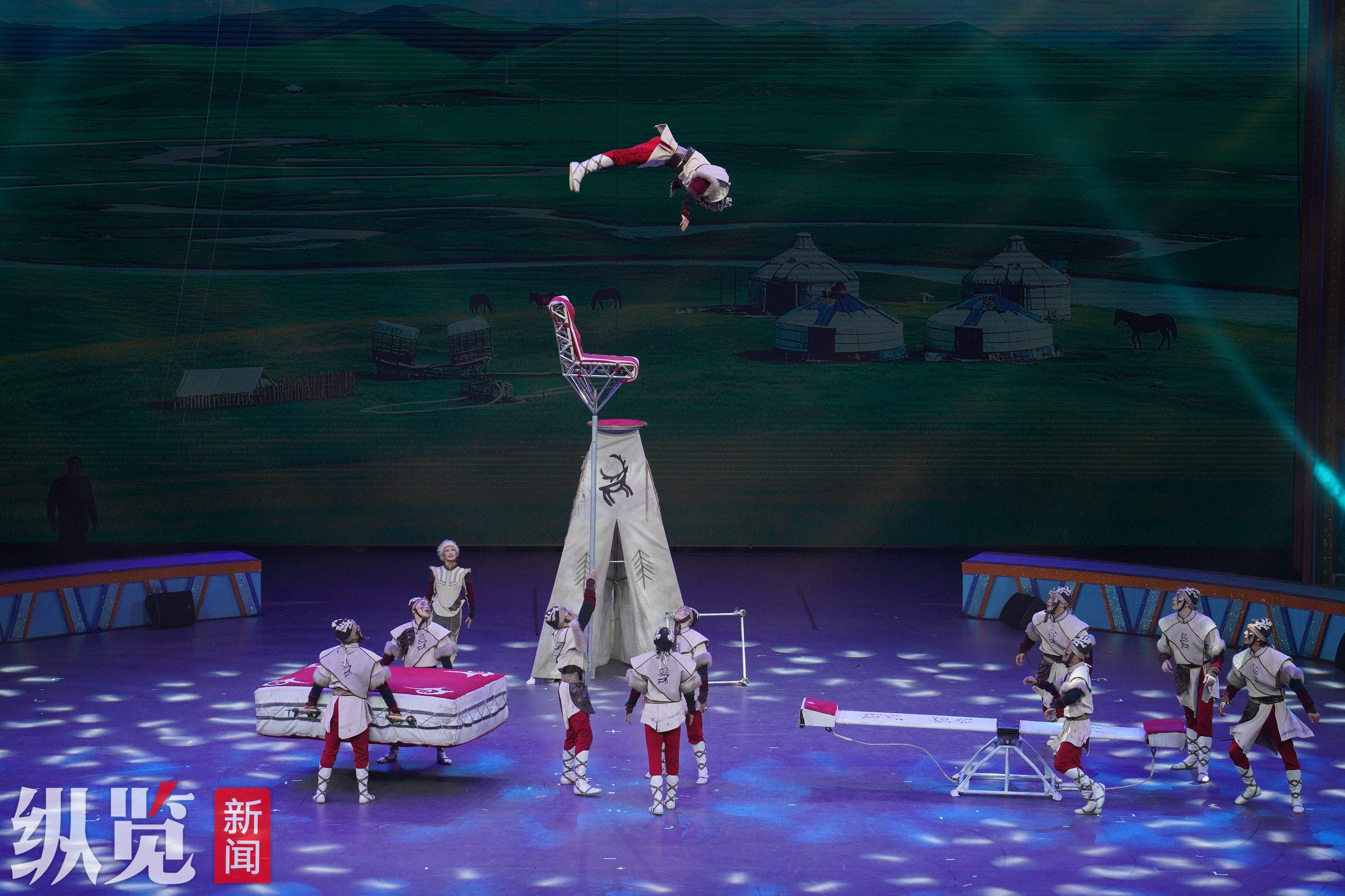 当蒙古大跳板的表演者踩着跳板腾空而起,几经翻腾,稳稳地坐在高高的道具座椅上时,全场的欢呼声与掌声瞬间席卷了整个场馆。
