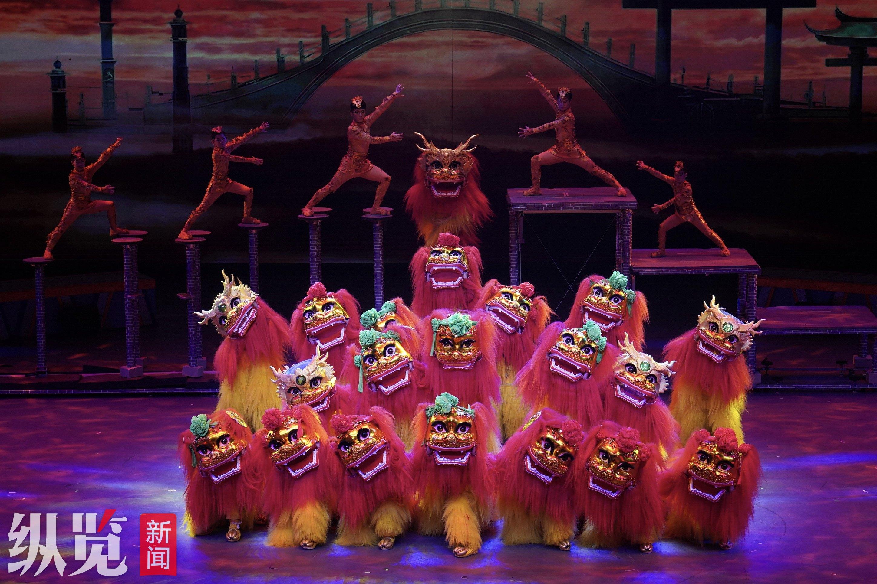 河北省杂技团和沧州杂技团带来的《祥狮跃九州》节目。张文进 摄
