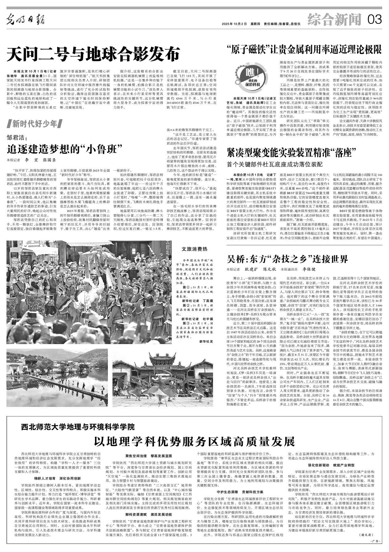 在吴桥,传统技艺从未停止与现代艺术的对话。彭立新,一位从8岁开始练杂技的“彭家班”第四代传人,与家人同台展示飞叉、转伞等绝活。他对脚下的这个舞台非常满意:“杂技城的马圈式舞台既专业又宽敞,杂技节‘回家’,对我们每位吴桥杂技艺人都意义非凡。”