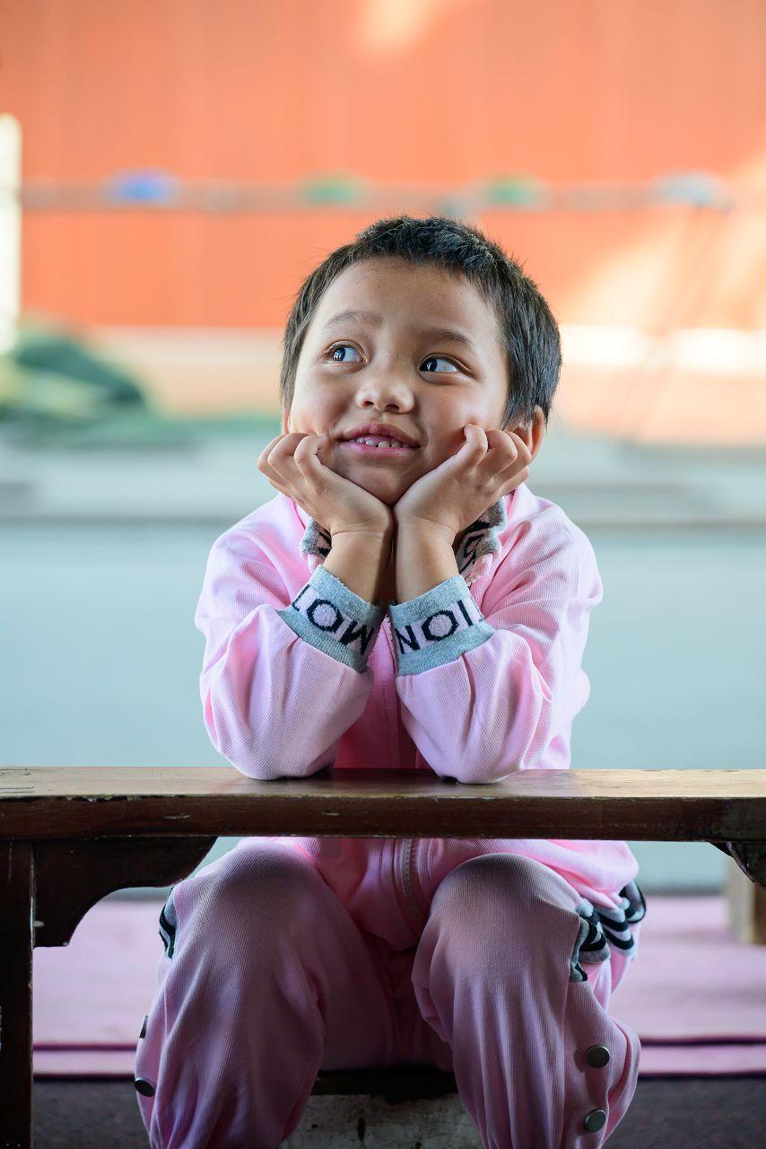 训练间隙,5岁的小萌娃坐在凳子上畅想美好的未来。长城网·冀云客户端记者 许付磊 摄
