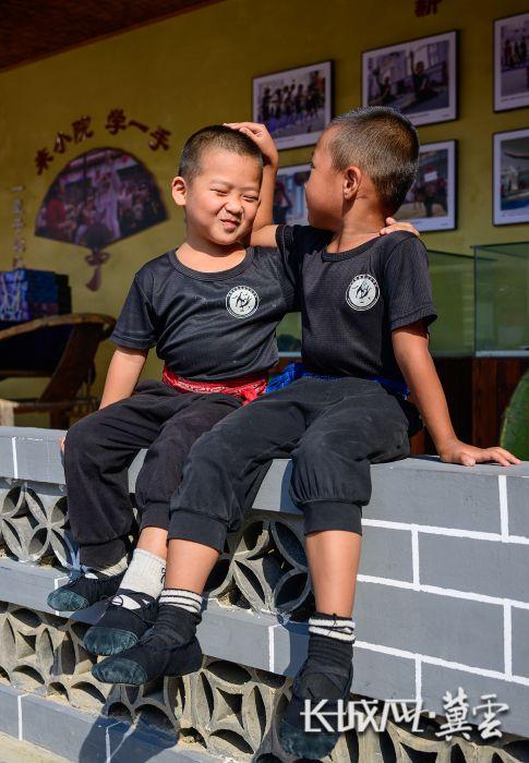 哥哥靳宇航(7岁)轻轻摸着弟弟靳宇健(6岁)的头,互相加油鼓劲。长城网·冀云客户端记者 许付磊 摄