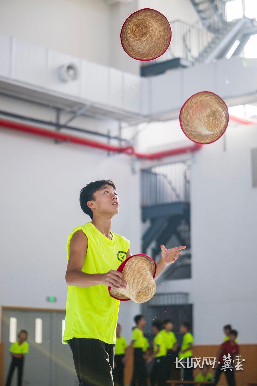 学员在吴桥杂技学校练习草帽技巧。长城网·冀云客户端记者 许付磊 摄