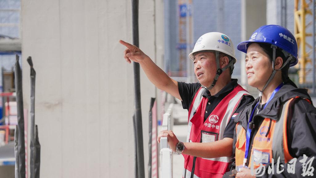 “我们刚来时这里还在挖土方,现在百米高楼都封顶了。”望着前方的双子塔楼,梁俊岭回忆道。作为安全员,梁俊岭每天要上下巡查数十次,李随连则要精准指挥每次吊装,确保建材平稳安全送达。