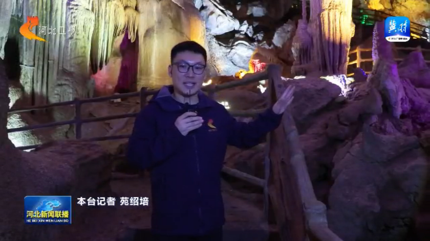 这里是邢台市临城县的崆山白云洞,在我身后大家可以看到,自然形成的钟乳石姿态万千、色彩斑斓、晶莹剔透,伴随着潺潺的溪流,将千百年来的时空轮转,向每一位游客娓娓道来。