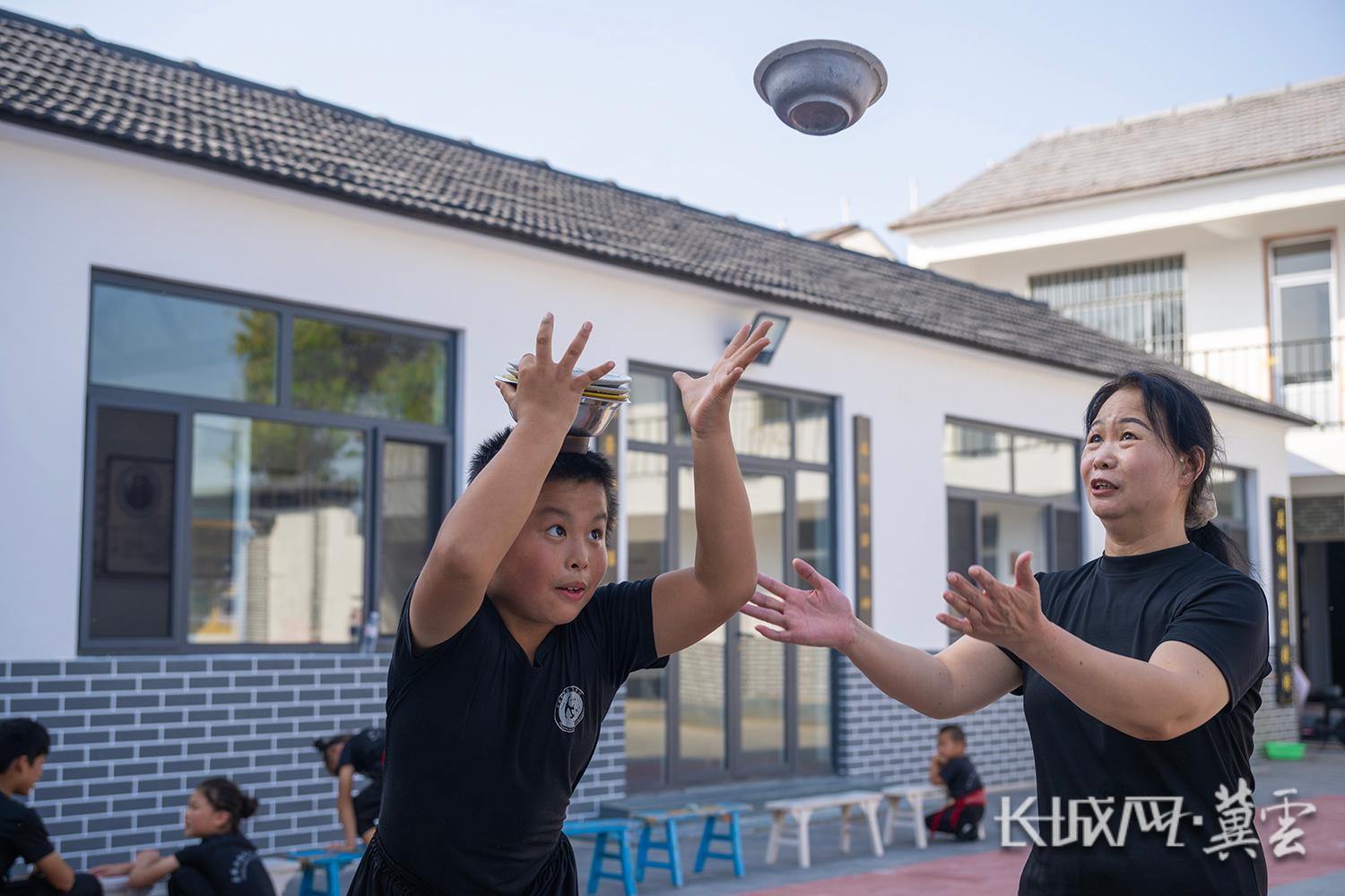 梁俊焕曾担任河北吴桥杂技艺术学校专业教师,退休后,她经常到杂技小院教导孩子练习杂技。长城网·冀云客户端记者 许付磊 摄