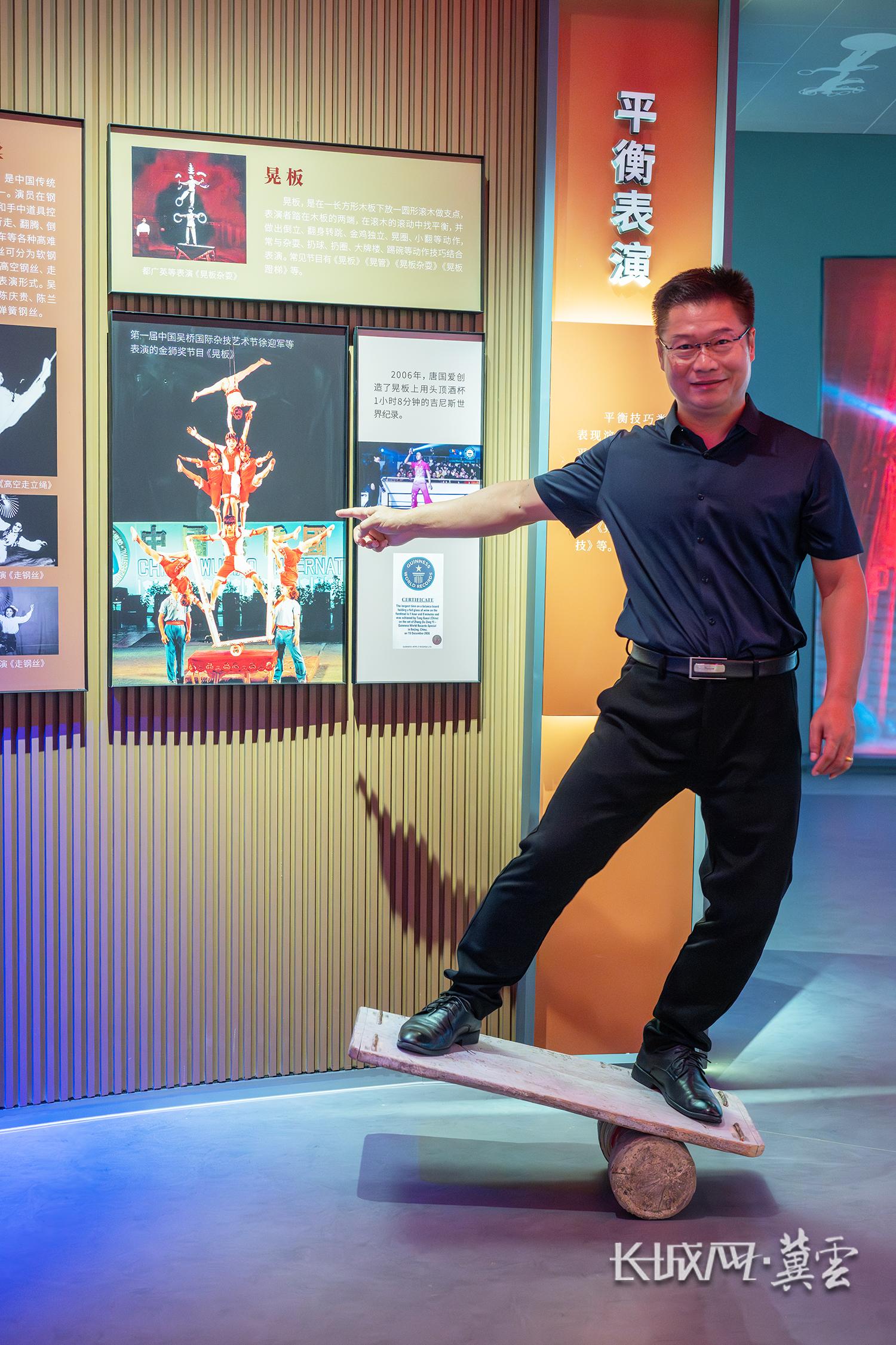 徐迎军是河北吴桥杂技艺术学校的第一届学员,在1987年的节目《晃板》中担任“底座”演员,需支撑6名演员并保持平衡,那年他只有15岁。如今,他担任吴桥县杂技文化生态中心办公室主任。长城网·冀云客户端记者 许付磊 摄