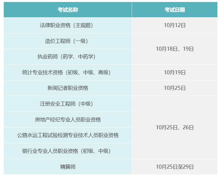 10月这些考试时间定了!