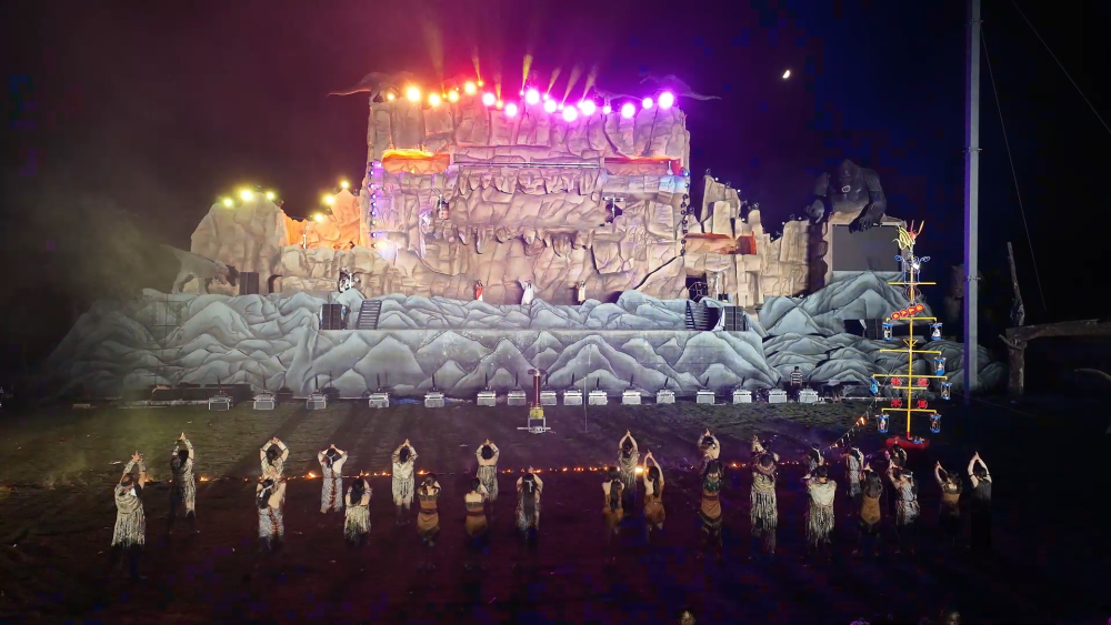 夜幕中,露营基地举行了大型文艺表演。赵峰 摄