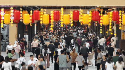 假期中,正定街道上挤满了游客。图片来源:正定发布