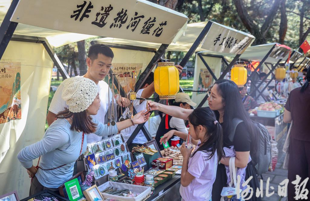 10月3日,游客在承德避暑山庄文化市集购买商品。河北日报记者 李佳泽 摄