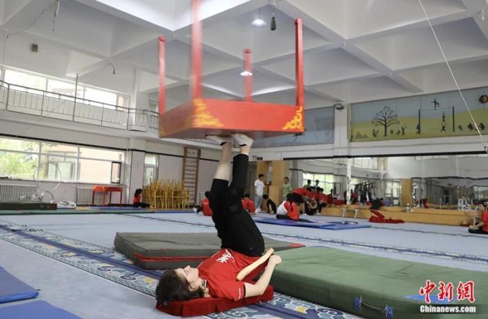 吴桥杂技艺人正在练习杂技。来源:中新视频