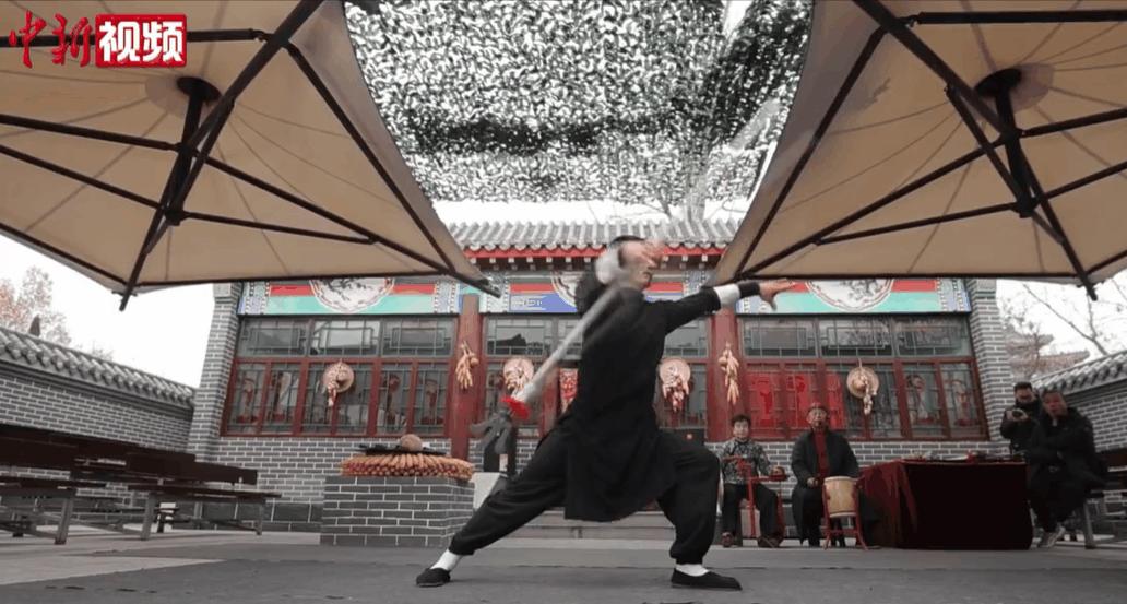 吴桥杂技艺人何树森“鼻奏唢呐”。来源:中新视频