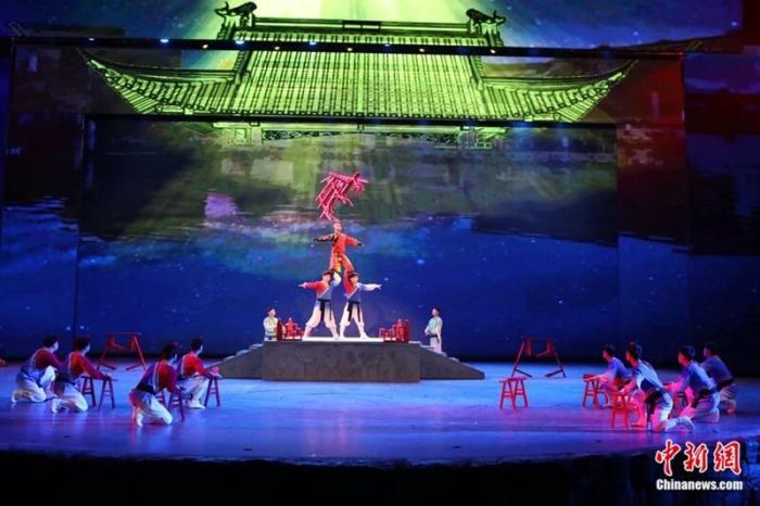 吴桥杂技大世界的杂技表演。中新社记者 翟羽佳 摄