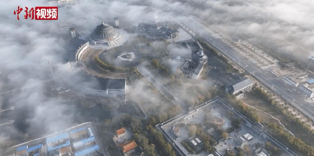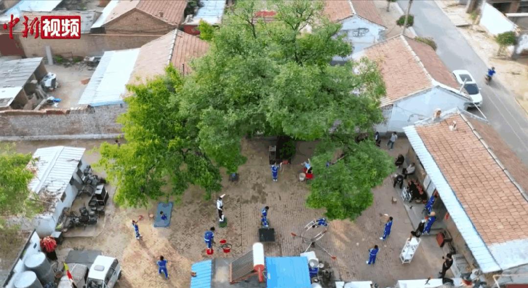 航拍吴桥县练习杂技的场景。来源:中新视频