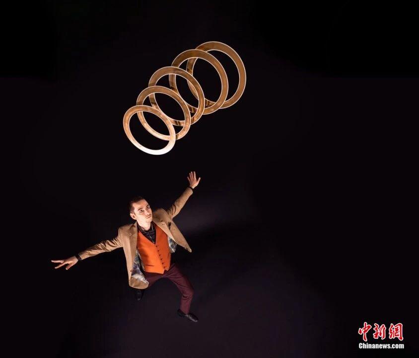吴桥杂技艺人正在表演杂技。来源:中新视频小小铜锣圆悠悠