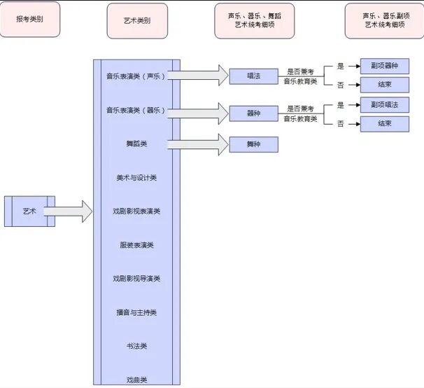 拟报考艺术专业的考生报考类别应选艺术。报考类别未选择艺术的考生,不能参加本年度艺术类专业考试,同时不能录取至使用艺术专业考试成绩的相关艺术类专业。