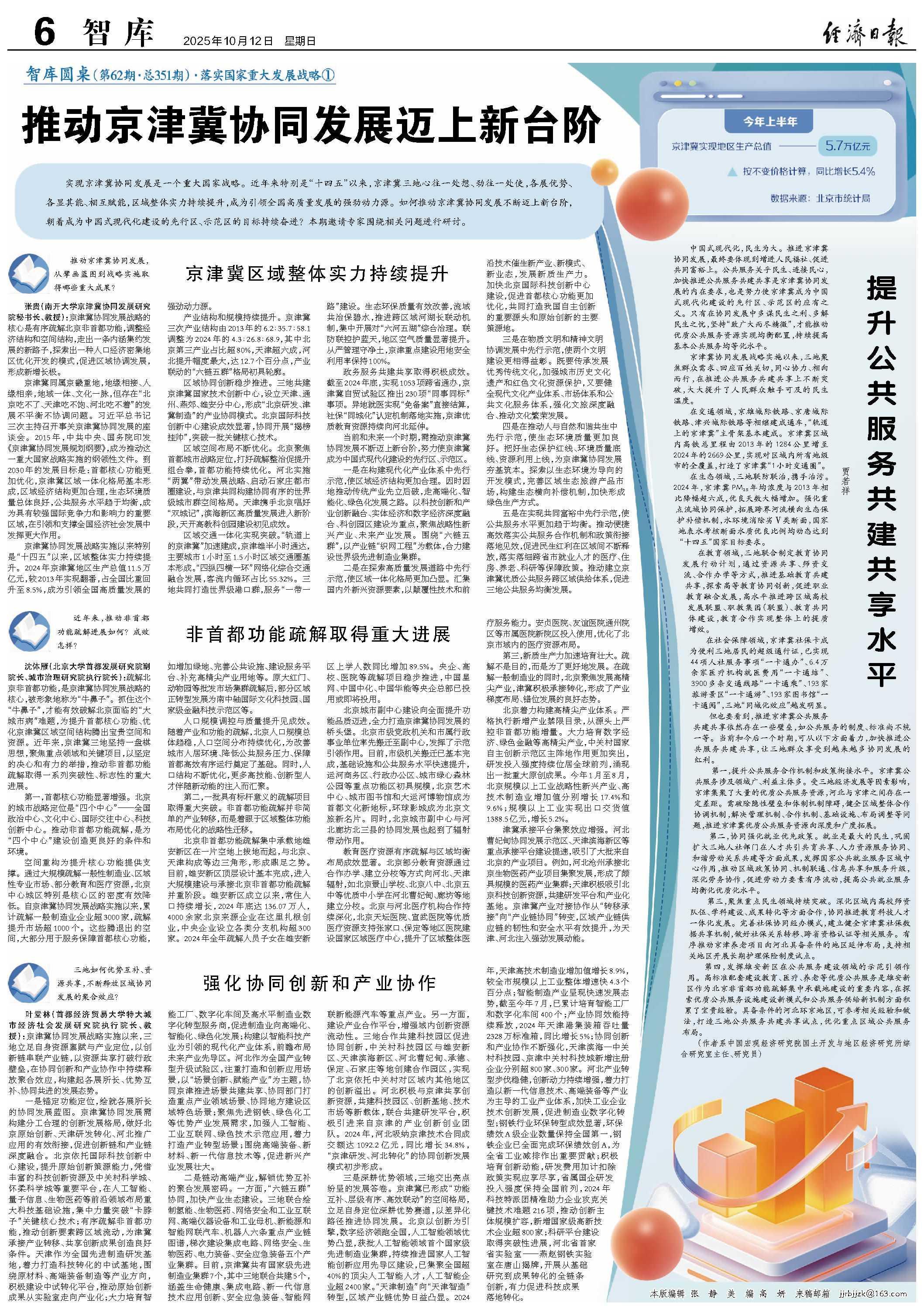 叶堂林(首都经济贸易大学特大城市经济社会发展研究院执行院长、教授):京津冀协同发展战略实施以来,三地立足自身资源禀赋与产业定位,以创新链串联产业链,以资源共享打破行政壁垒,在协同创新和产业协作中持续释放聚合效应,构建起各展所长、优势互补、协同共进的发展态势。