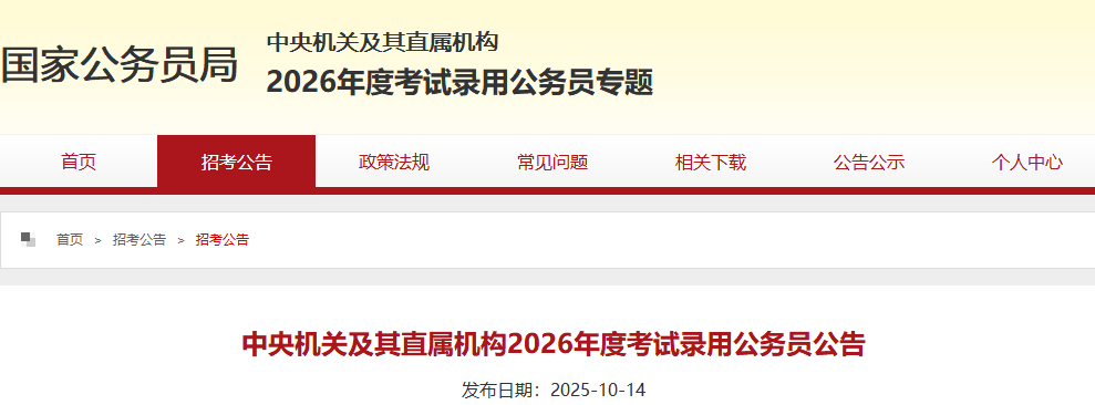 中央机关及其直属机构2026年度考试录用公务员公告来了!报名即将开始,共计划招录3.81万人。