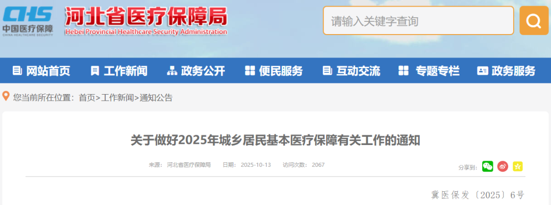 河北省医疗保障局等三部门近日发布关于做好2025年城乡居民基本医疗保障有关工作的通知↓↓↓